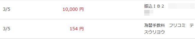 | F. | 送金手数料 | 154円 |