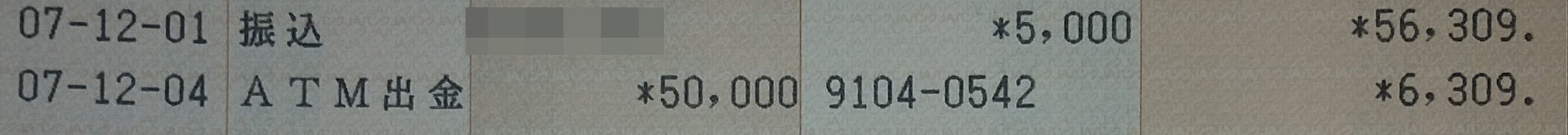 通帳記載残高 |